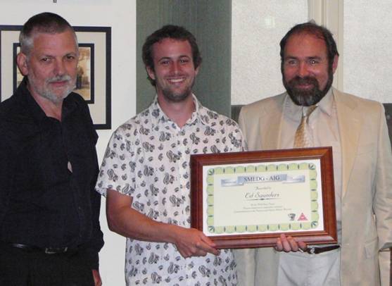 Sam Lees, Ed Saunders & Kim Stanton-Cook at Ed's SMEDG-AIG Bursary presentation.